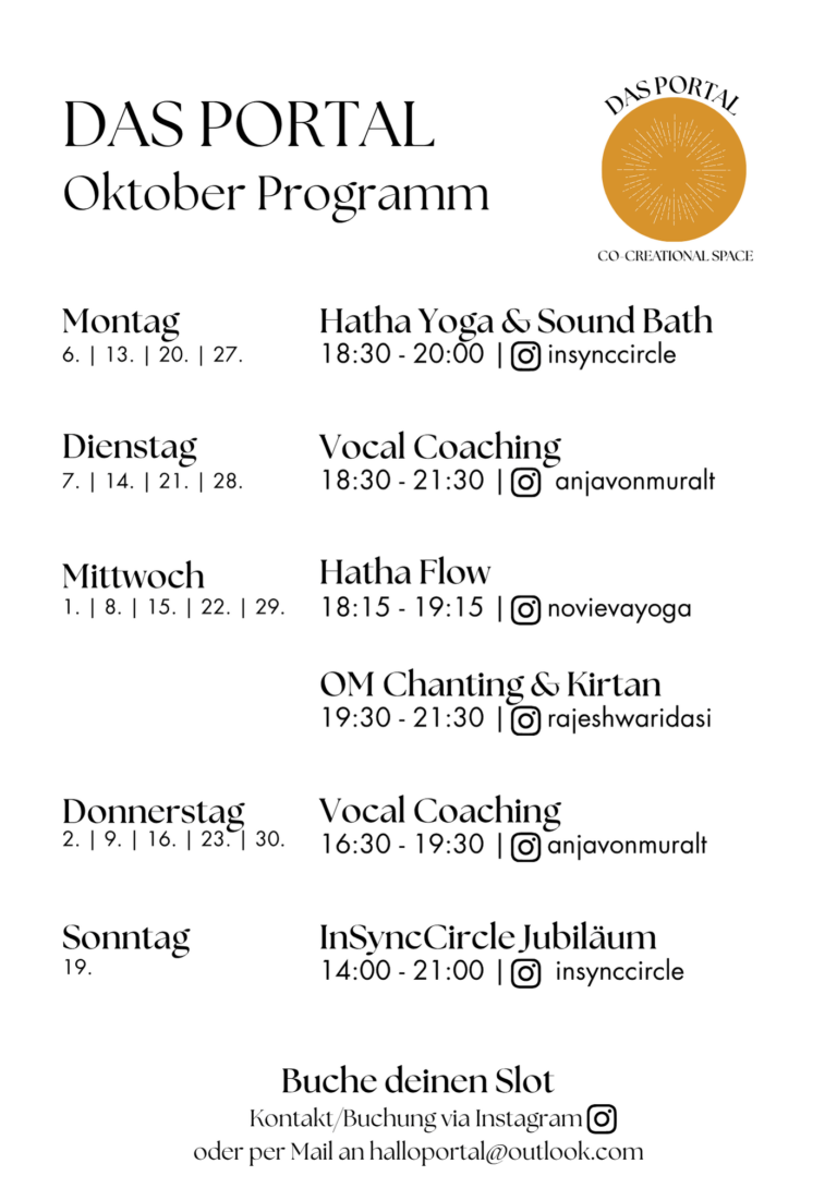 Mit der Zeit hat sich ein kraftvolles, wiederkehrendes Programm entwickelt, das dem Raum Struktur und Energie verleiht. Geführt wird das Portal von uns, Liz & Lisa vom InSyncCircle, die mit viel Achtsamkeit und Klarheit den Raum halten.